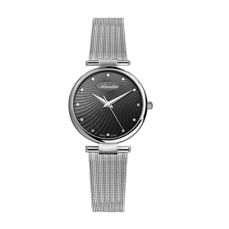 Damski zegarek szwajcarskiej marki Adriatica wykonany ze stali szlachetnej 316 L. Zegarek łączy w sobie prostotę i nowoczesność. Uwagę przyciąga oryginalna tarcza, którą podkreśla bransoleta typu mesh.