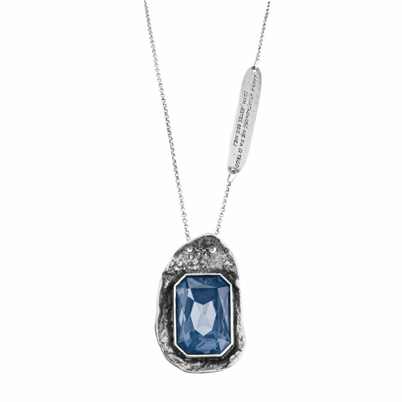 • Cechy dodatkowe: Blaszka o długości 4,5 cm z ręcznie grawerowaną sentencją „Żadna wyjątkowość nie da ci tego czym jesteś bez niej”. Wymiary zawieszki 5x3 cm.