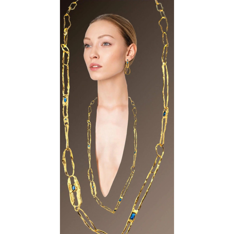 Srebrny naszyjnik  próby 925 polskiej  marki Motyle pozłacany 24 karatowym złotem. Kolekcja inspirowana ciągłym ruchem materii, która tworzy nowe formy i przypomina o ciągłym procesie przemiany. Każdy egzemplarz biżuterii jest ręcznie wykonany, więc wyjątkowy i jedyny w swoim rodzaju.