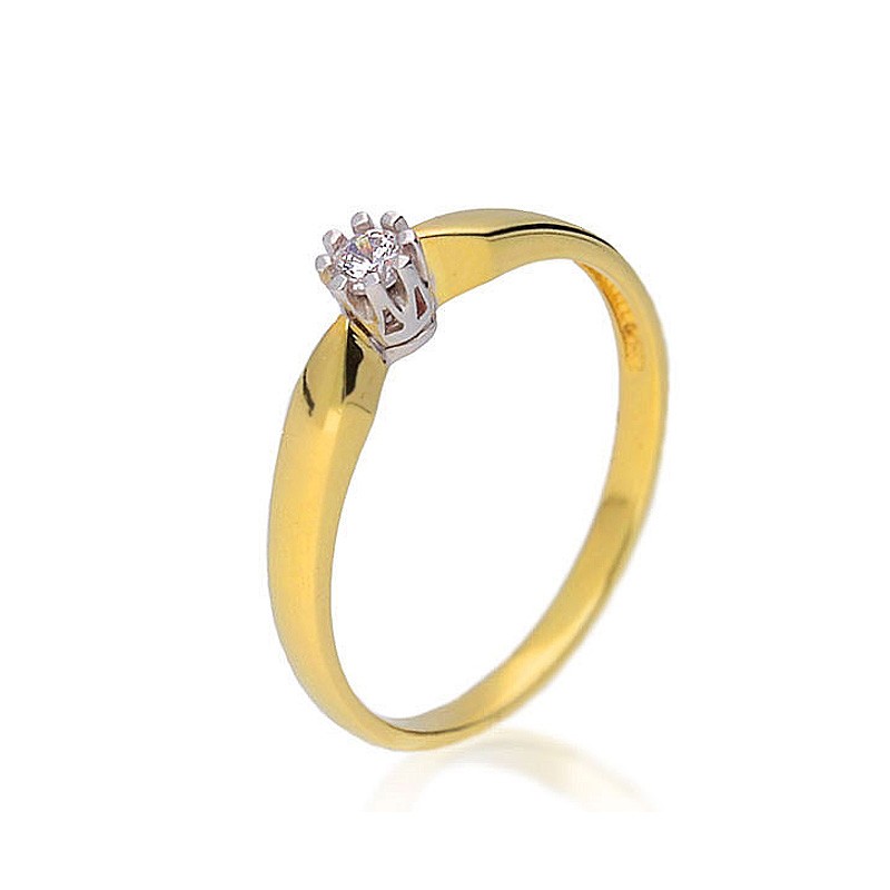 Ujmujący swoim pięknem pierścionek zaręczynowy, dopracowany w każdym szczególe model, idealny na tak ważną okazję jaką są zaręczyny. Pierścionek złoty z brylantem 0,10 ct.