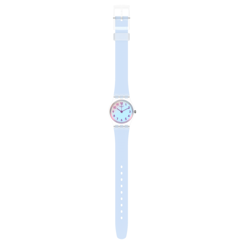 Nowoczesny zegarek damski szwajcarskiej marki Swatch Casual blue. Delikatny zegarek ,który wyróżnia przezroczysta koperta z białą tarczą ,dzięki czemu zegarek jest czytelny.